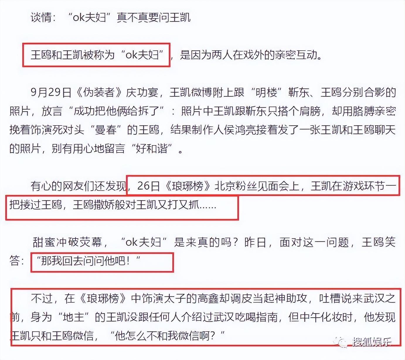 而这次爆料说两人要结婚的绯闻中,也掺杂着王凯和宋茜疑似错过合作的消息。