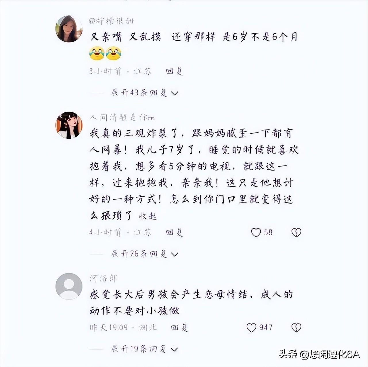 双方都有不同的意见,有的人认为母子之间这样的举动不太合适;有的人认为孩子还小,什么都不懂。
